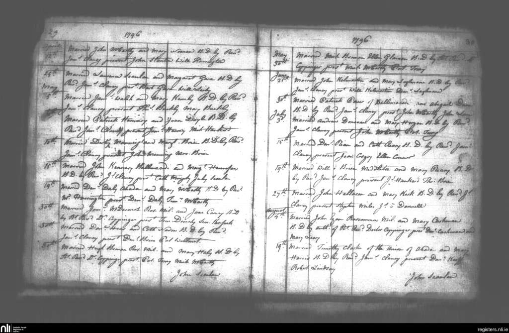 Cloyne; County of Cork; Diocese of Cloyne. Marriages, Apr. 1796 to Aug. 1796