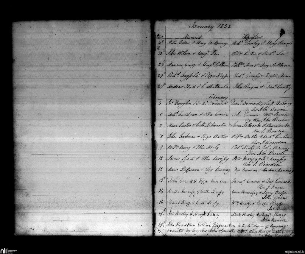 Cloyne; County of Cork; Diocese of Cloyne. Marriages, Jan. 1832 to Feb. 1832