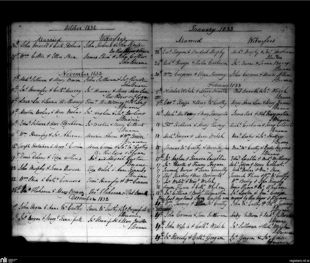 Cloyne; County of Cork; Diocese of Cloyne. Marriages, Oct. 1832 to Feb. 1833