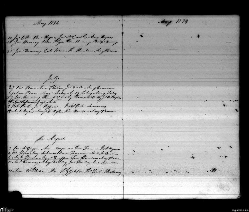 Cloyne; County of Cork; Diocese of Cloyne. Marriages, May 1834 to Aug. 1834