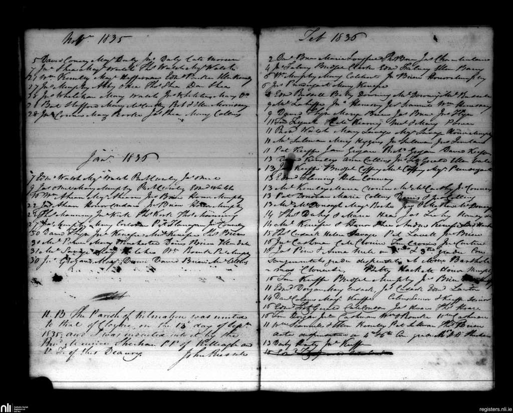 Cloyne; County of Cork; Diocese of Cloyne. Marriages, Nov. 1835 to Feb. 1836