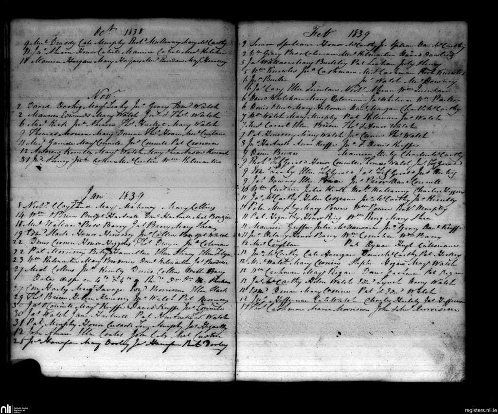 Cloyne; County of Cork; Diocese of Cloyne. Marriages, Oct. 1838 to Feb. 1839