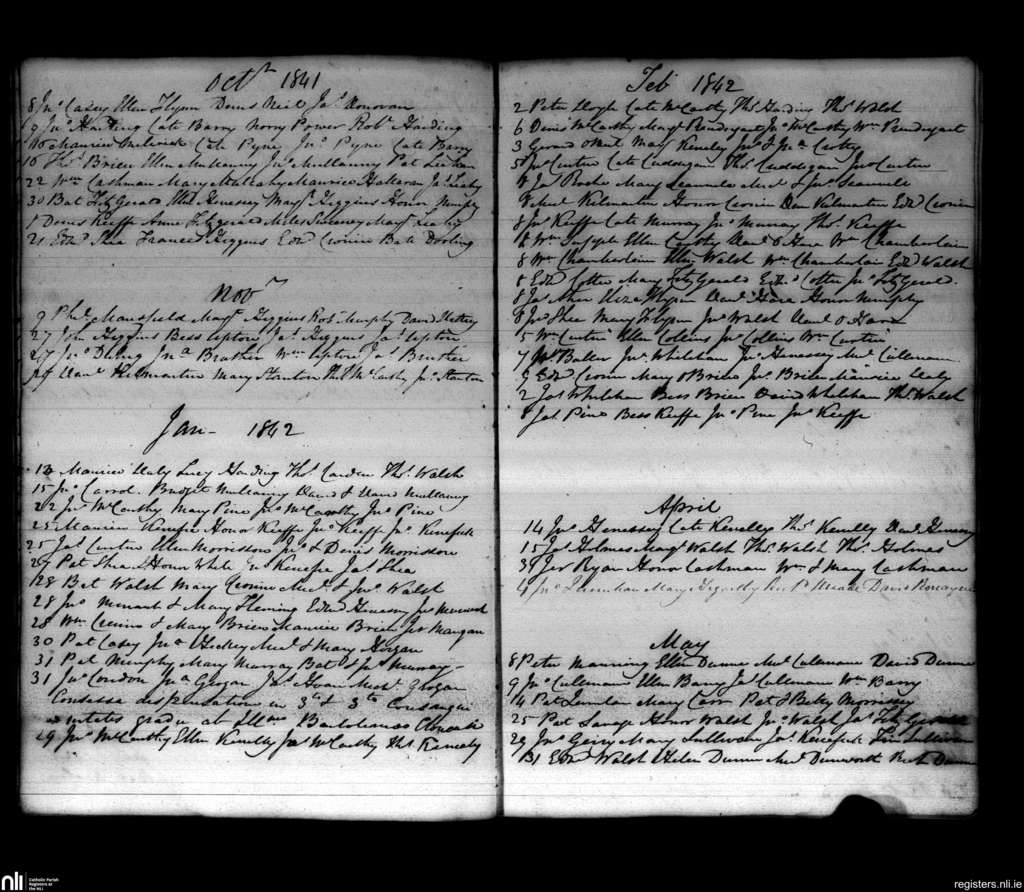 Cloyne; County of Cork; Diocese of Cloyne. Marriages, Oct. 1841 to May 1842