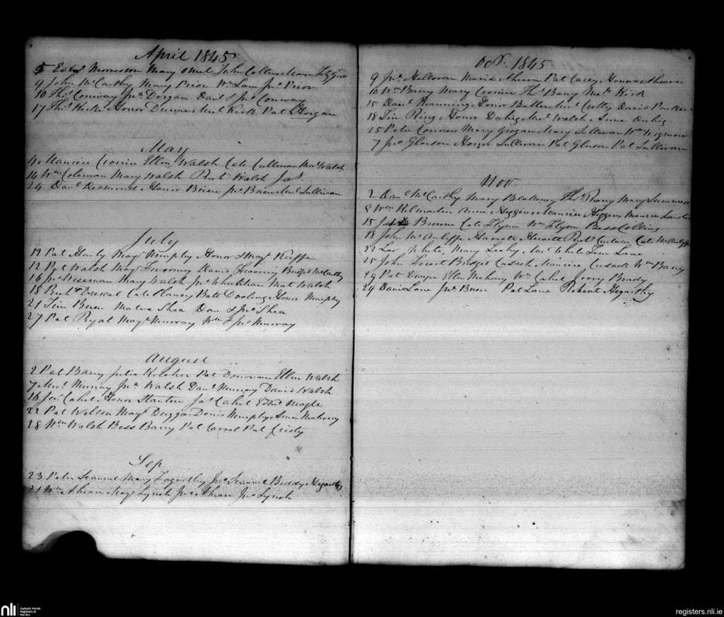 Cloyne; County of Cork; Diocese of Cloyne. Marriages, Apr. 1845 to Nov. 1845