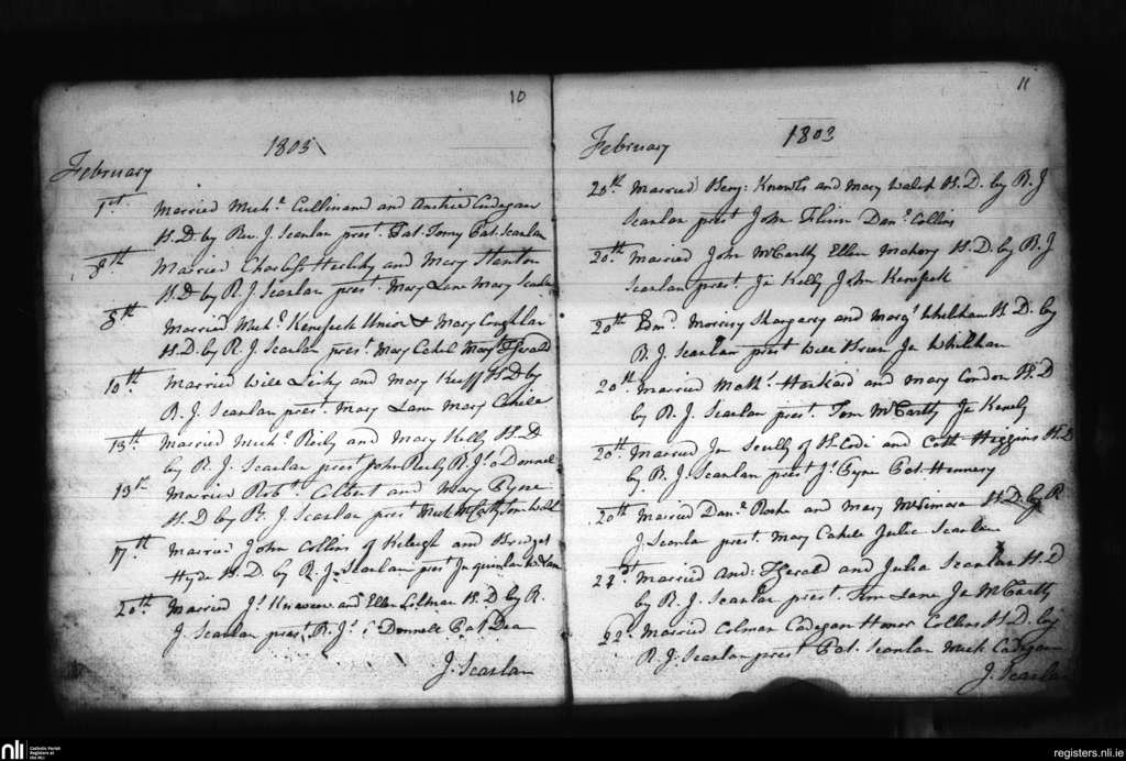 Cloyne; County of Cork; Diocese of Cloyne. Marriages, Feb. 1803