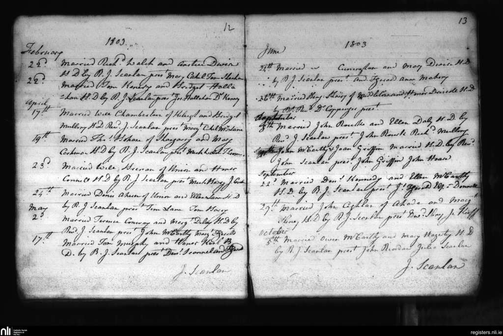 Cloyne; County of Cork; Diocese of Cloyne. Marriages, Feb. 1803 to Oct. 1803