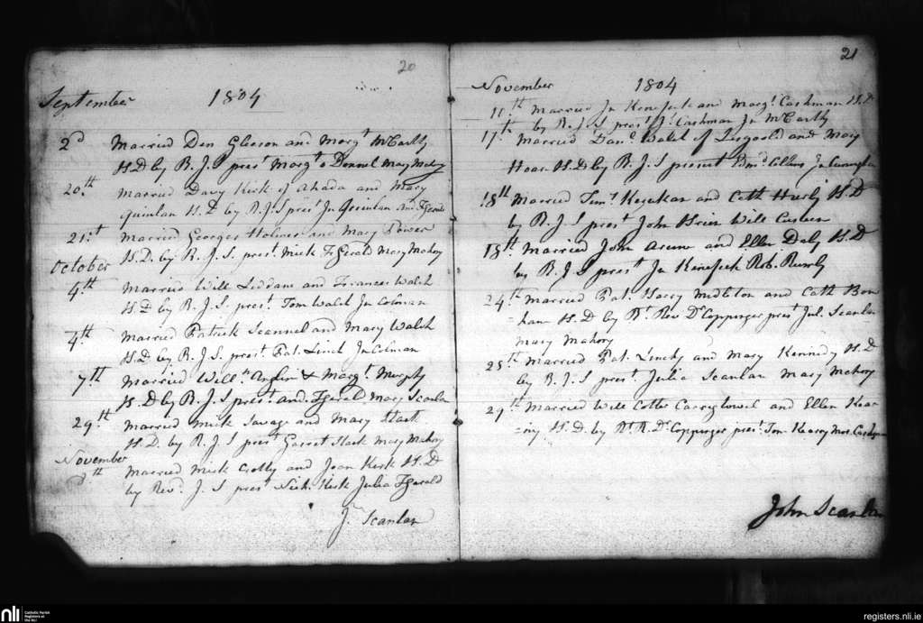Cloyne; County of Cork; Diocese of Cloyne. Marriages, Sep. 1804 to Nov. 1804