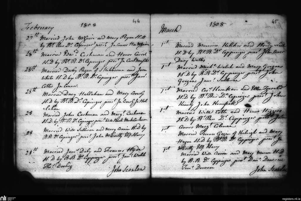 Cloyne; County of Cork; Diocese of Cloyne. Marriages, Feb. 1808 to Mar. 1808