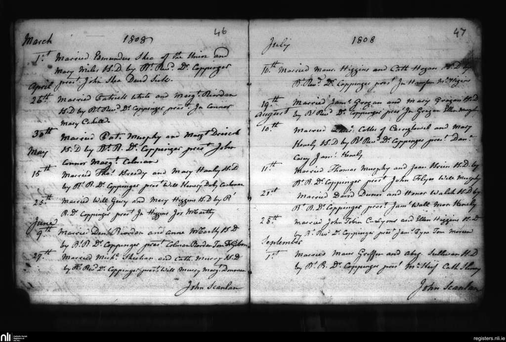 Cloyne; County of Cork; Diocese of Cloyne. Marriages, Mar. 1808 to Sep. 1808