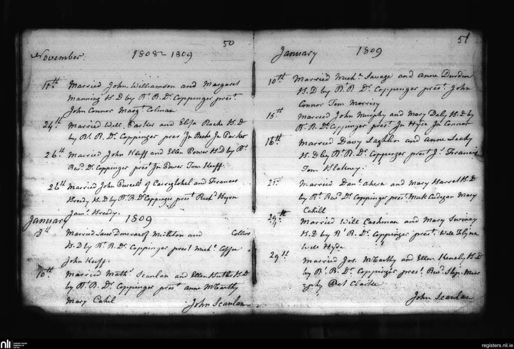 Cloyne; County of Cork; Diocese of Cloyne. Marriages, Nov. 1808 to Jan. 1809