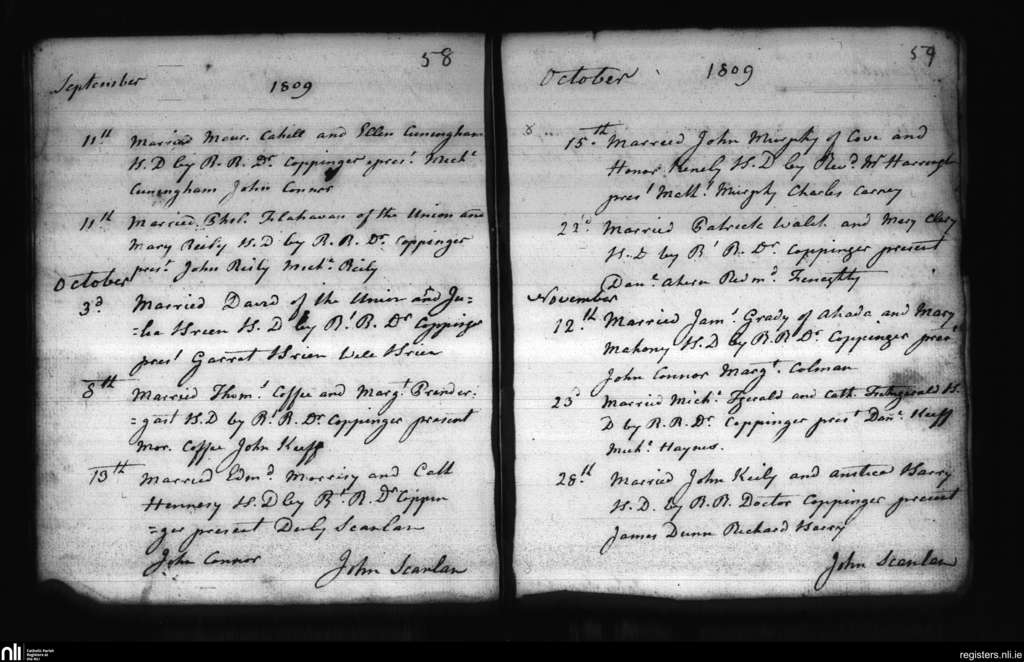 Cloyne; County of Cork; Diocese of Cloyne. Marriages, Sep. 1809 to Nov. 1809