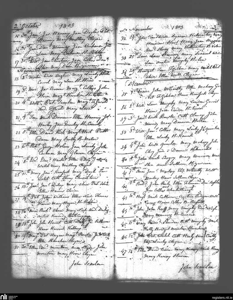 Cloyne; County of Cork; Diocese of Cloyne. Baptisms, Oct. 1803 to Dec. 1803