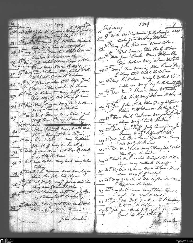 Cloyne; County of Cork; Diocese of Cloyne. Baptisms, Jan. 1804 to Feb. 1804
