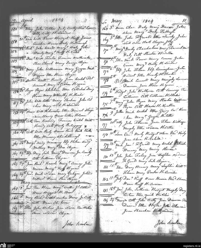 Cloyne; County of Cork; Diocese of Cloyne. Baptisms, Apr. 1804 to May 1804