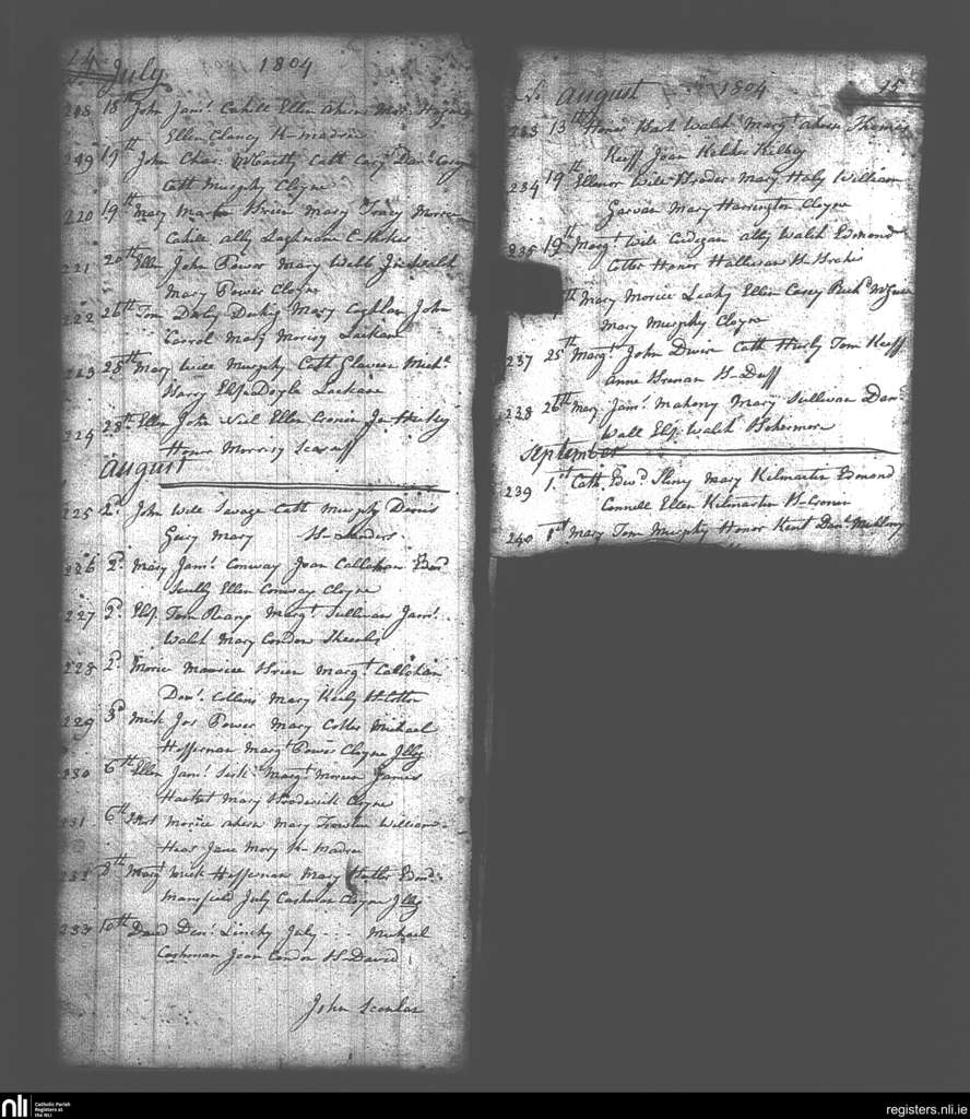 Cloyne; County of Cork; Diocese of Cloyne. Baptisms, July 1804 to Sep. 1804