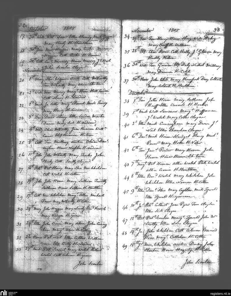 Cloyne; County of Cork; Diocese of Cloyne. Baptisms, Oct. 1805 to Dec. 1805