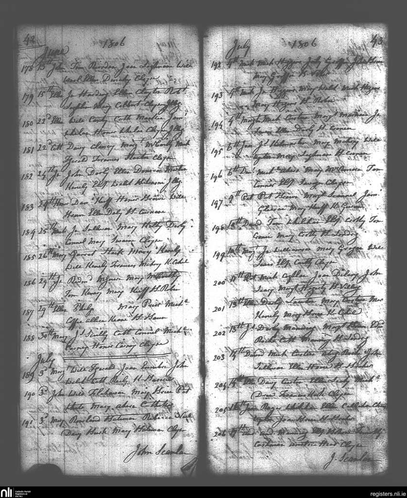 Cloyne; County of Cork; Diocese of Cloyne. Baptisms, June 1806 to July 1806