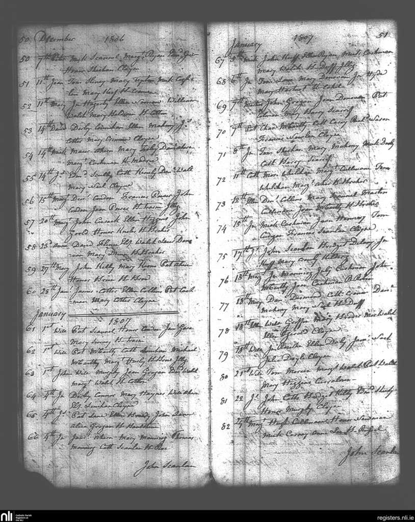 Cloyne; County of Cork; Diocese of Cloyne. Baptisms, Dec. 1806 to Jan. 1807