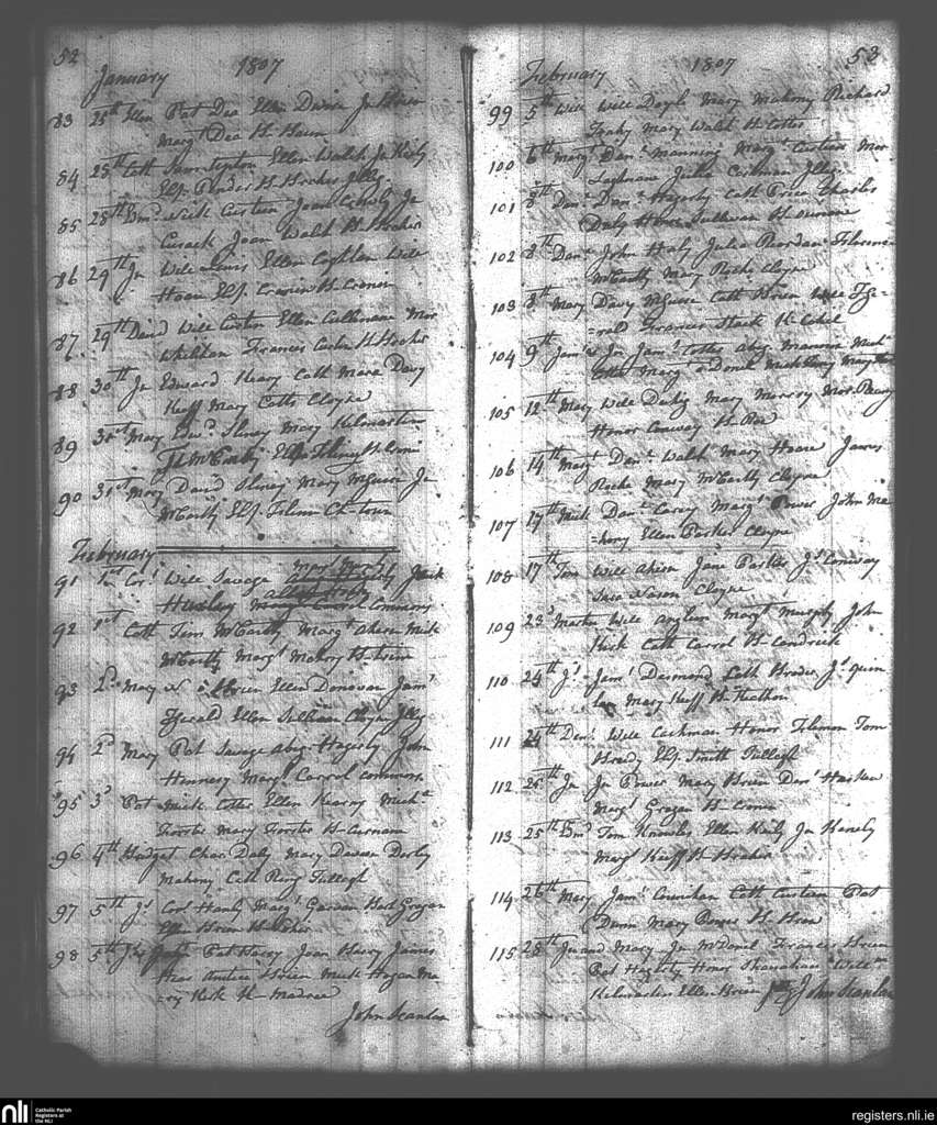 Cloyne; County of Cork; Diocese of Cloyne. Baptisms, Jan. 1807 to Feb. 1807
