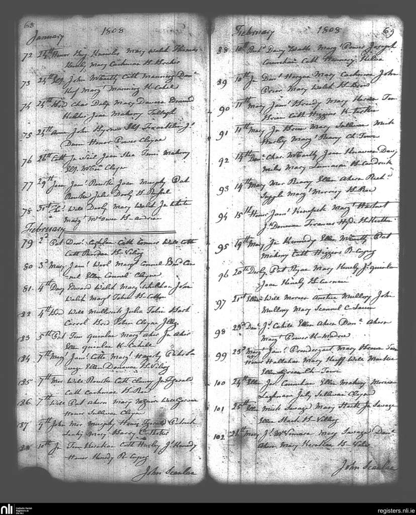 Cloyne; County of Cork; Diocese of Cloyne. Baptisms, Jan. 1808 to Feb. 1808