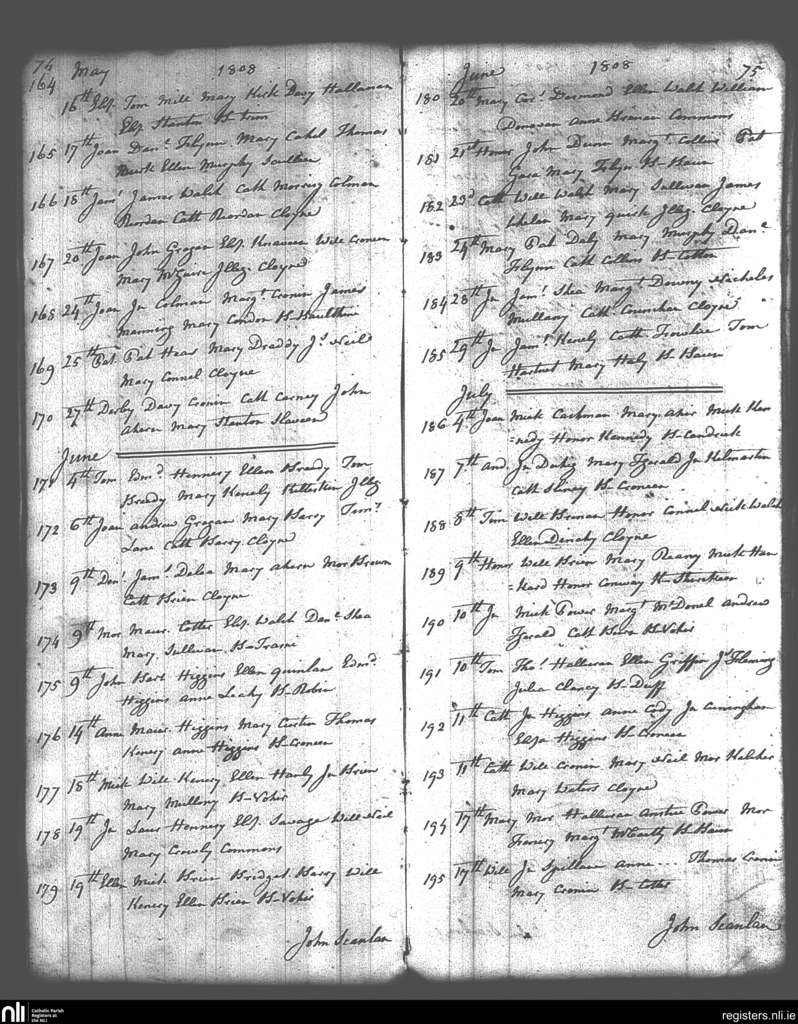 Cloyne; County of Cork; Diocese of Cloyne. Baptisms, May 1808 to July 1808