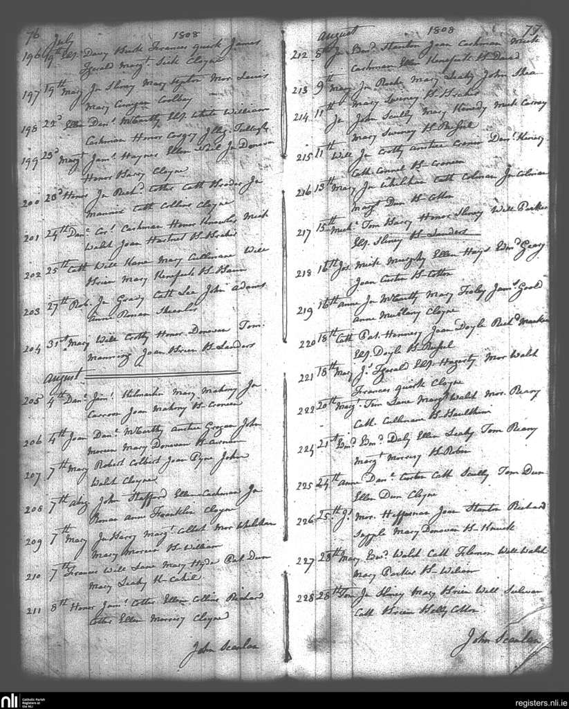 Cloyne; County of Cork; Diocese of Cloyne. Baptisms, July 1808 to Aug. 1808