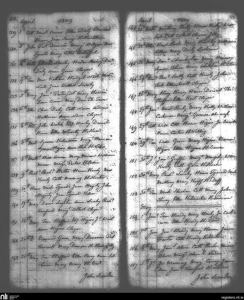 Cloyne; County of Cork; Diocese of Cloyne. Baptisms, Apr. 1809 to May 1809