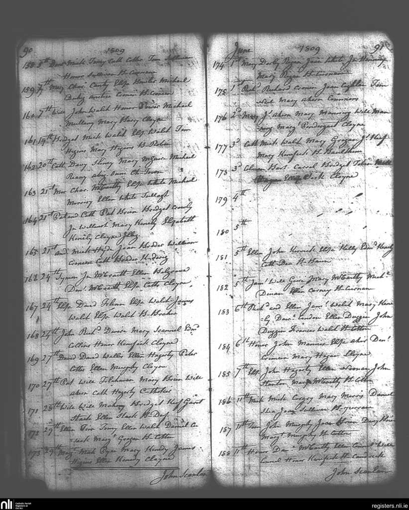 Cloyne; County of Cork; Diocese of Cloyne. Baptisms, May 1809 to June 1809