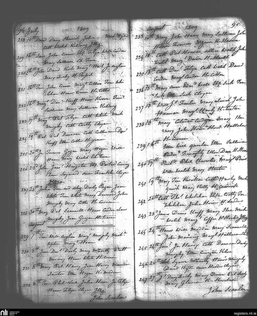 Cloyne; County of Cork; Diocese of Cloyne. Baptisms, July 1809 to Aug. 1809