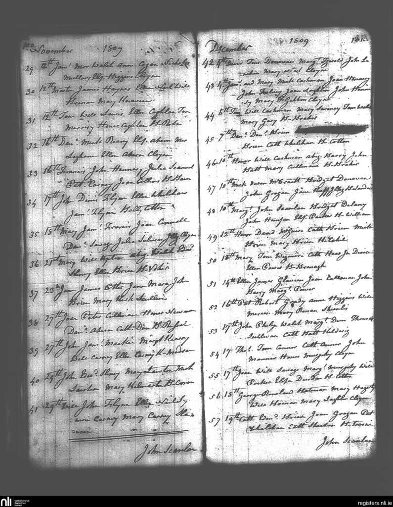 Cloyne; County of Cork; Diocese of Cloyne. Baptisms, Nov. 1809 to Dec. 1809
