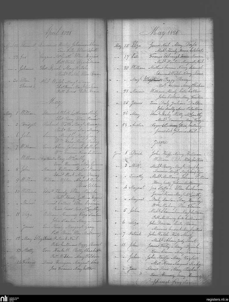 Cloyne; County of Cork; Diocese of Cloyne. Baptisms, Apr. 1821 to June 1821