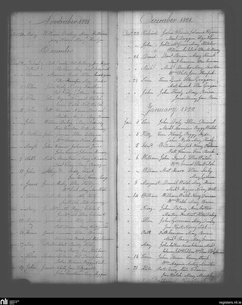 Cloyne; County of Cork; Diocese of Cloyne. Baptisms, Nov. 1821 to Jan. 1822