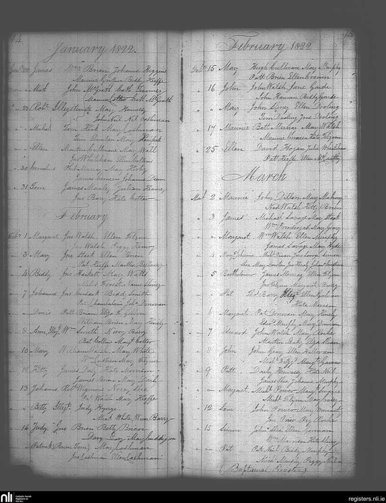 Cloyne; County of Cork; Diocese of Cloyne. Baptisms, Jan. 1822 to Mar. 1822