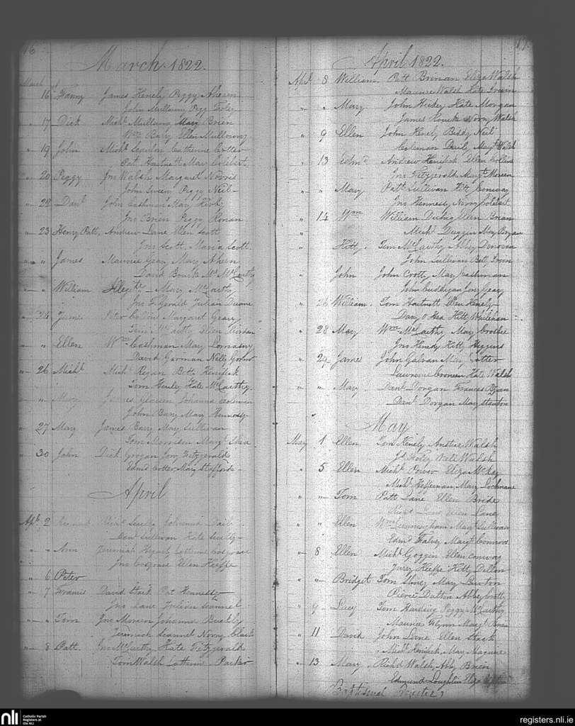Cloyne; County of Cork; Diocese of Cloyne. Baptisms, Mar. 1822 to May 1822