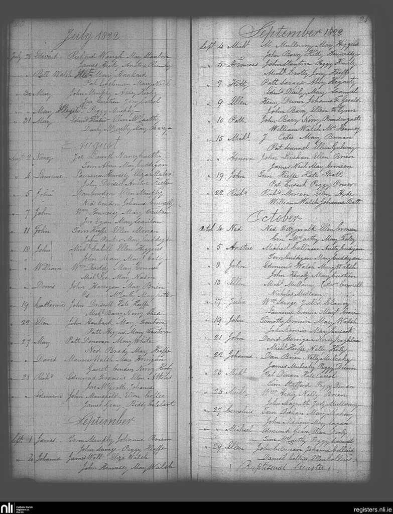 Cloyne; County of Cork; Diocese of Cloyne. Baptisms, July 1822 to Oct. 1822
