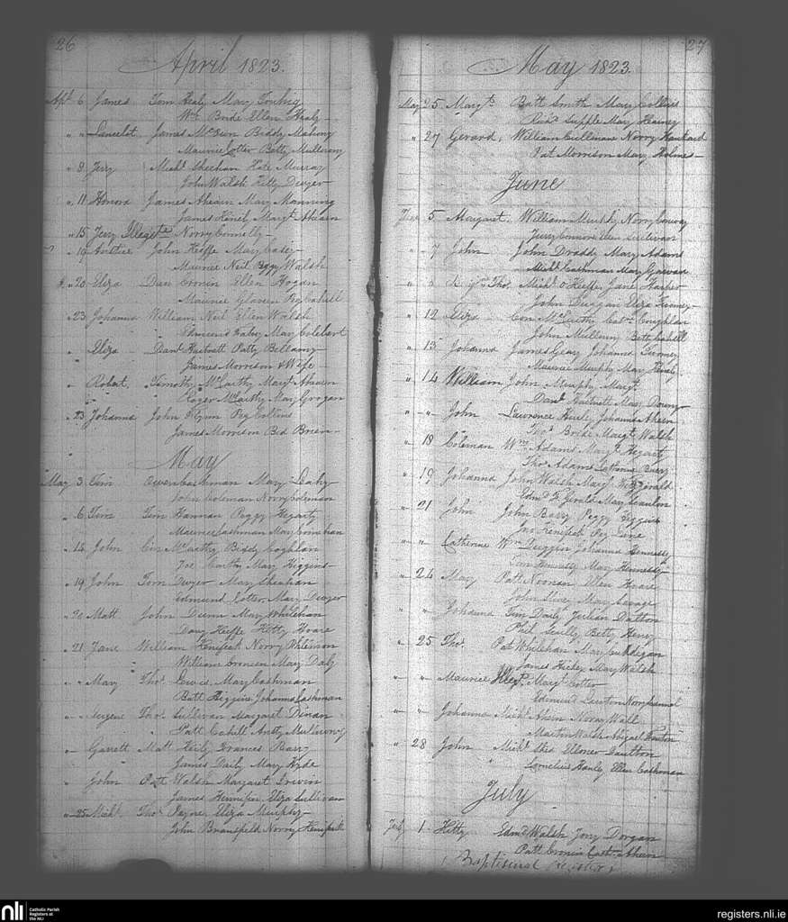 Cloyne; County of Cork; Diocese of Cloyne. Baptisms, Apr. 1823 to July 1823