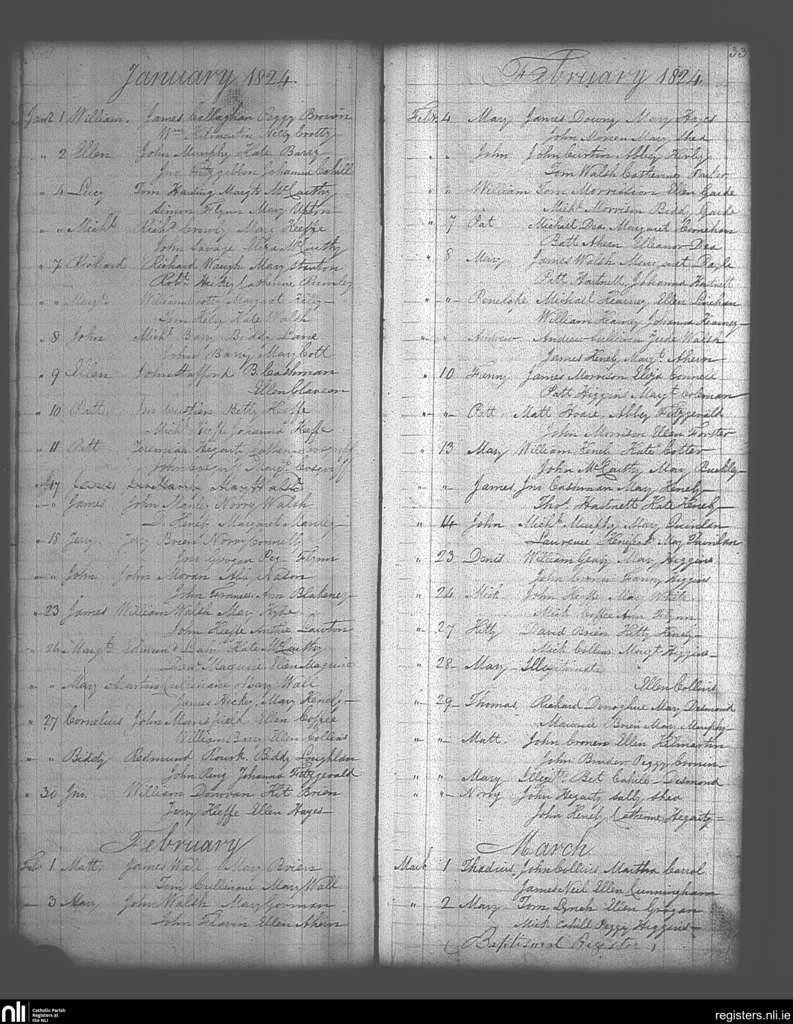 Cloyne; County of Cork; Diocese of Cloyne. Baptisms, Jan. 1824 to Mar. 1824