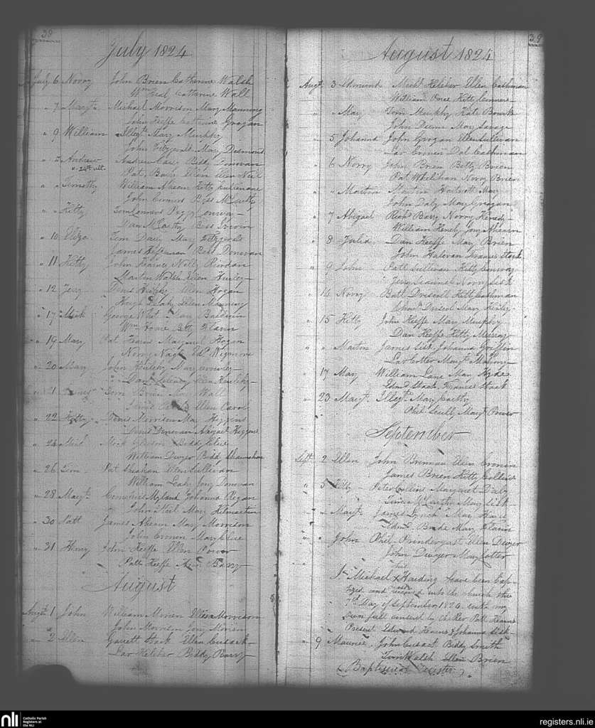 Cloyne; County of Cork; Diocese of Cloyne. Baptisms, July 1824 to Sep. 1824