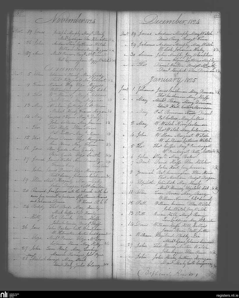 Cloyne; County of Cork; Diocese of Cloyne. Baptisms, Nov. 1824 to Jan. 1825