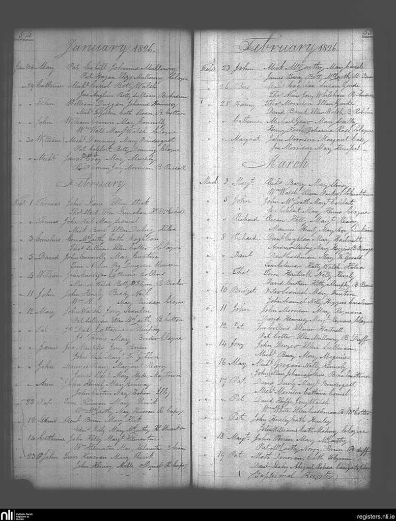 Cloyne; County of Cork; Diocese of Cloyne. Baptisms, Jan. 1826 to Mar. 1826