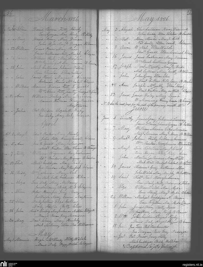 Cloyne; County of Cork; Diocese of Cloyne. Baptisms, Mar. 1826 to June 1826
