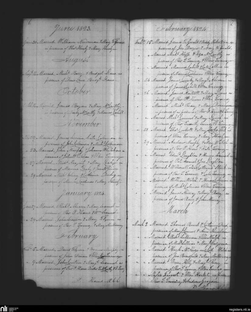Cloyne; County of Cork; Diocese of Cloyne. Marriages, June 1823 to Mar. 1824