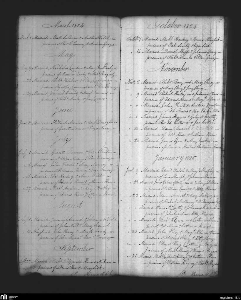 Cloyne; County of Cork; Diocese of Cloyne. Marriages, Mar. 1824 to Jan. 1825