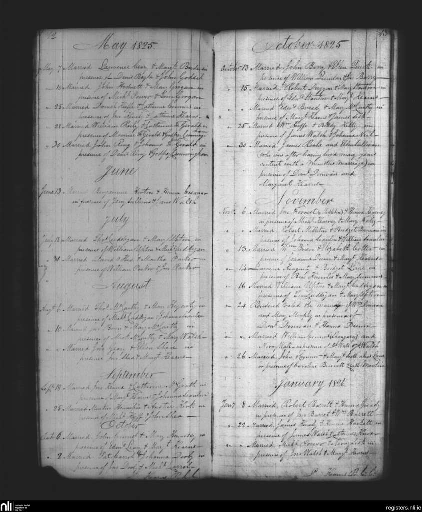 Cloyne; County of Cork; Diocese of Cloyne. Marriages, May 1825 to Jan. 1826