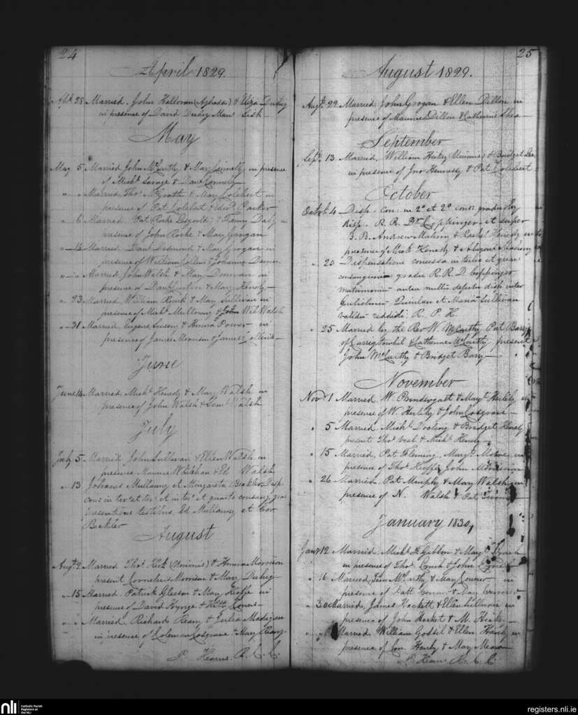 Cloyne; County of Cork; Diocese of Cloyne. Marriages, Apr. 1829 to Jan. 1830