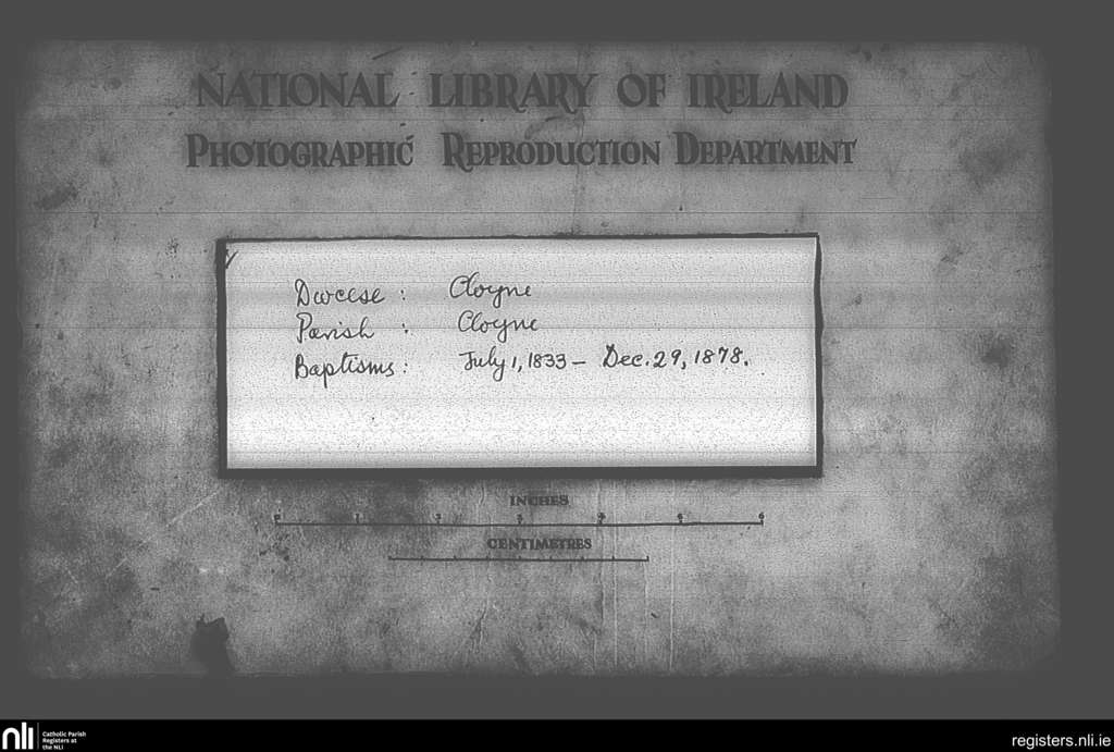 Cloyne; County of Cork; Diocese of Cloyne. Baptisms