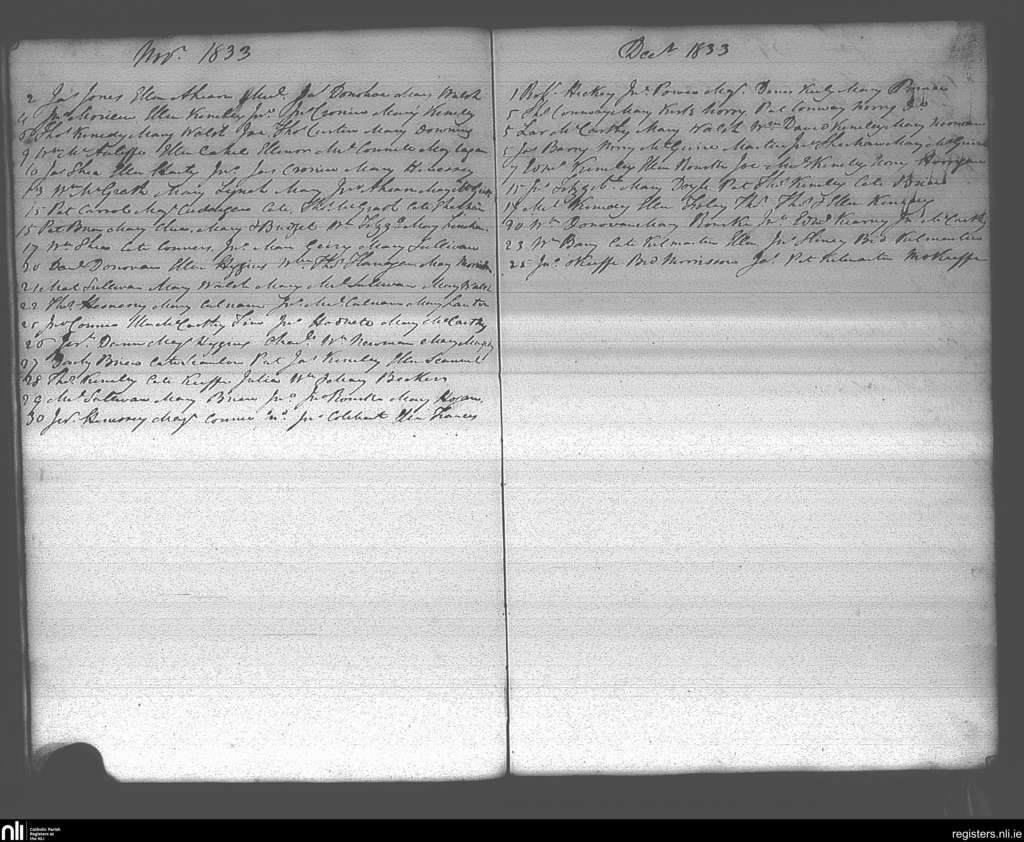 Cloyne; County of Cork; Diocese of Cloyne. Baptisms, Nov. 1833 to Dec. 1833
