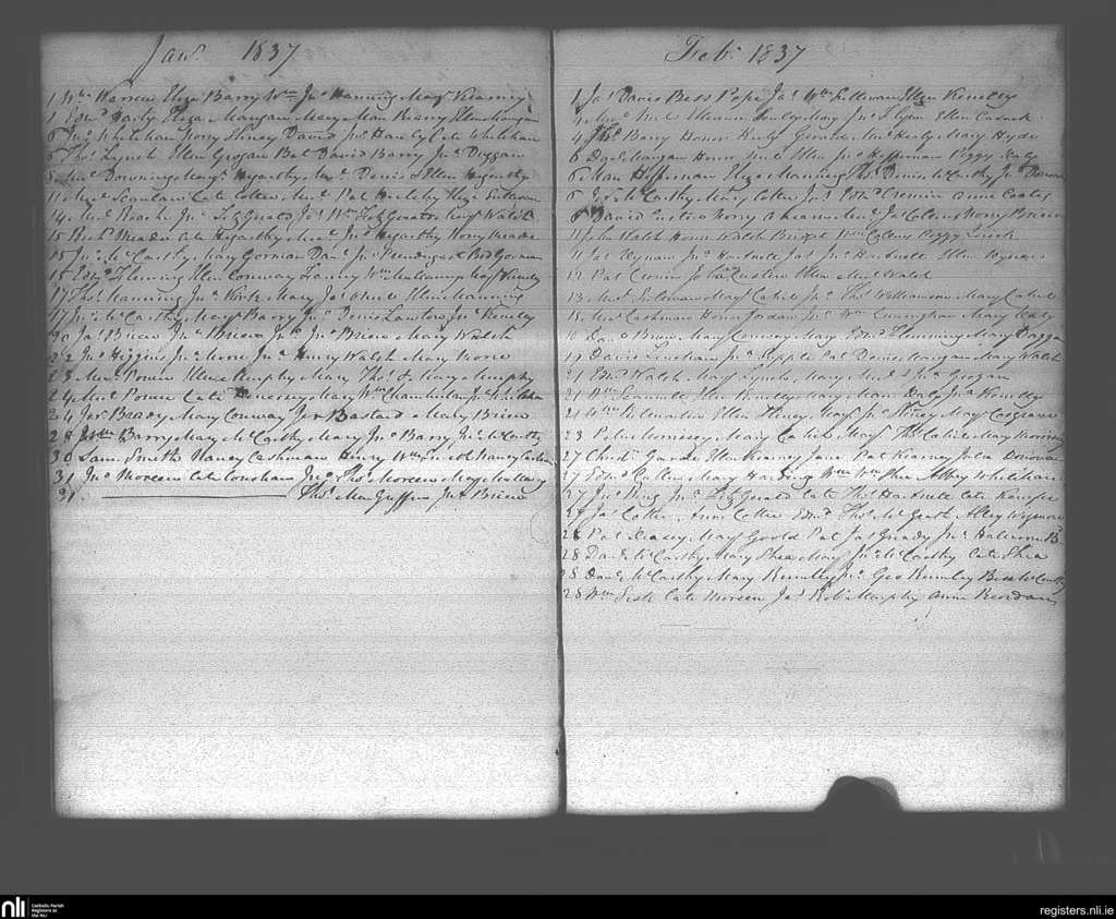 Cloyne; County of Cork; Diocese of Cloyne. Baptisms, Jan. 1837 to Feb. 1837