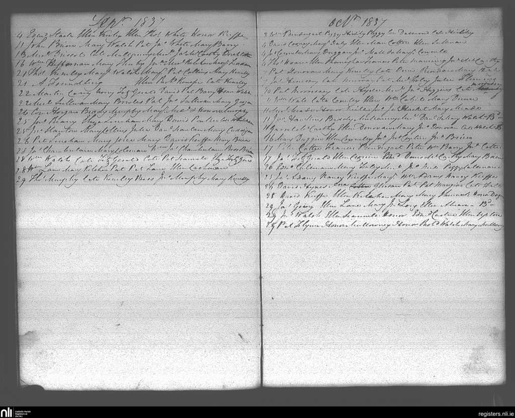 Cloyne; County of Cork; Diocese of Cloyne. Baptisms, Sep. 1837 to Oct. 1837