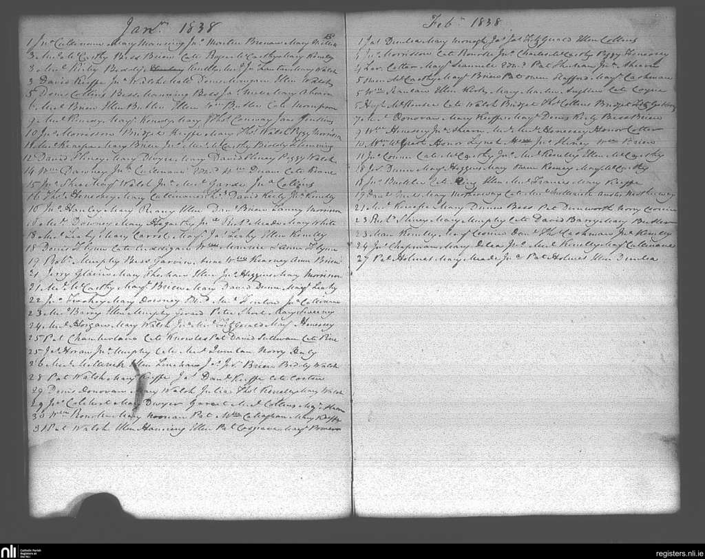 Cloyne; County of Cork; Diocese of Cloyne. Baptisms, Jan. 1838 to Feb. 1838
